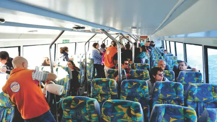 Boarding at Punta Bandera port. Once on board, passengers will be informed of the safety rules and sailing conditions.
